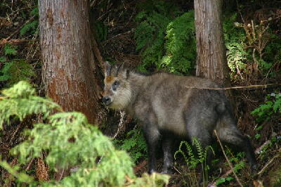上市の蓬沢でのカモシカです、人を気にせず草を食べていました。