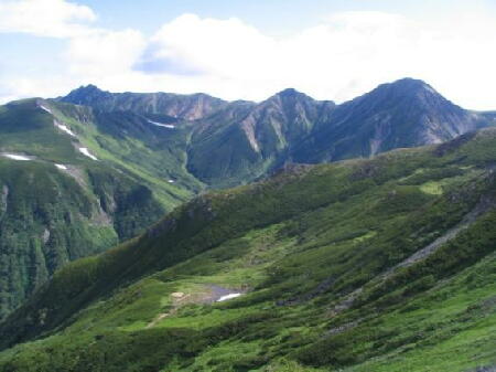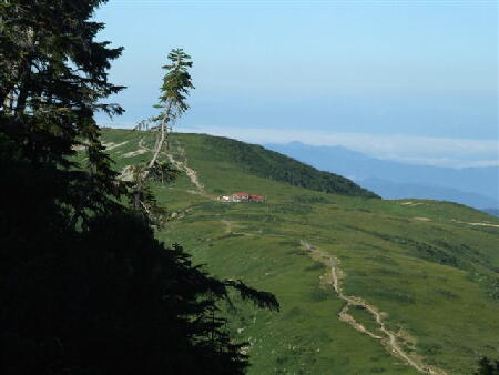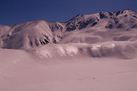 【ルート沿線上の除去】・・・・背景は弥陀ヶ原・立山荘と天狗山(2521m)。