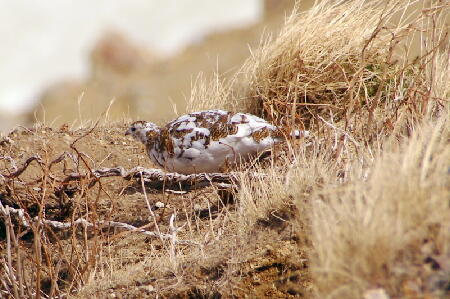 先日4〜6日、室堂平で解説当番をしまして、子連れの雷鳥に会いました。3日目はセンターの橋の下でオコジョが引っ越しして来たらしくて、半日が「オコジョツアー」になり、訪れたお客さんたちを喜ばせてくれました。(コンパクトカメラで画質は悪いですが、子供を口にくわえて運んでいるのが分かりますか?)